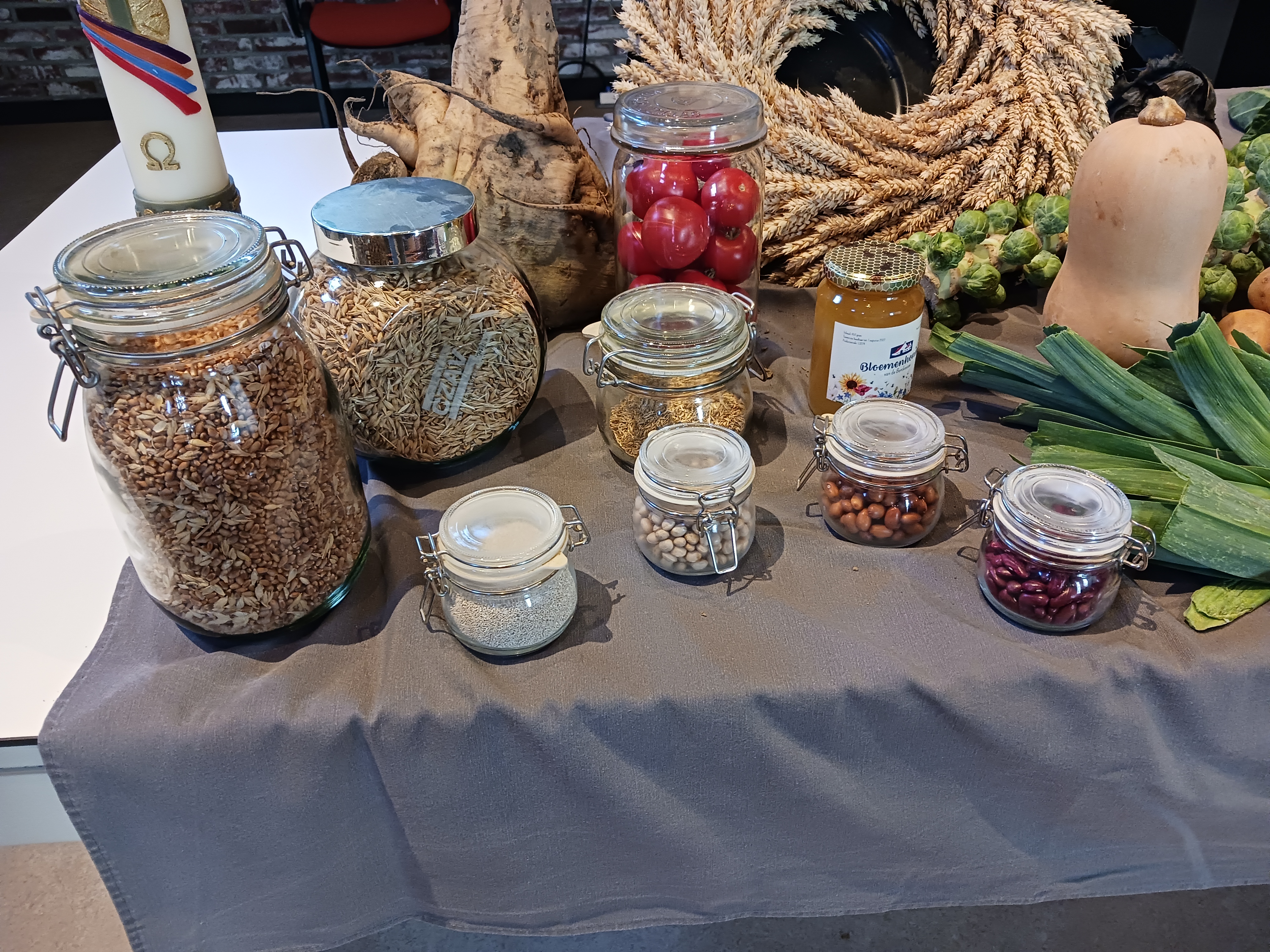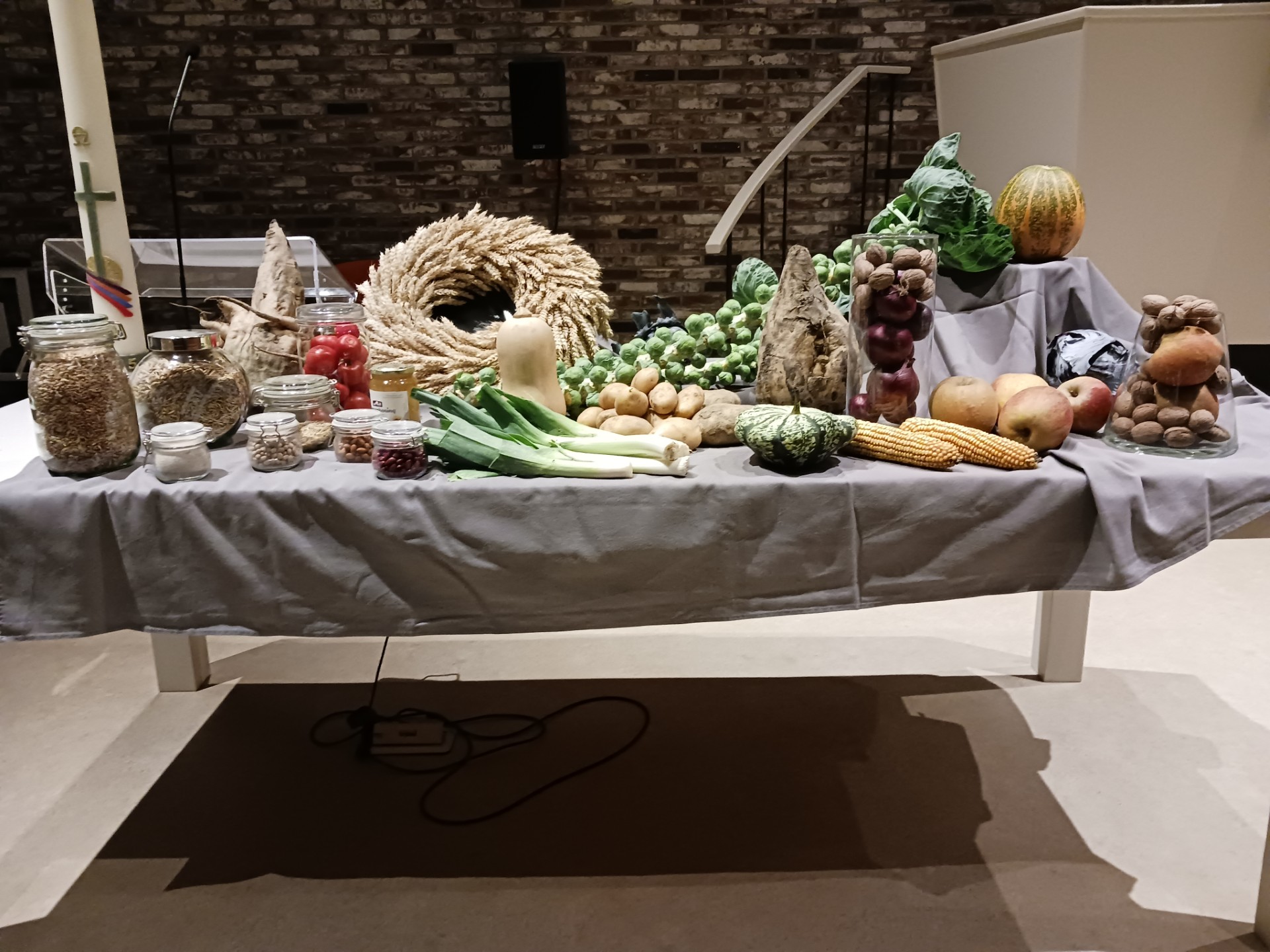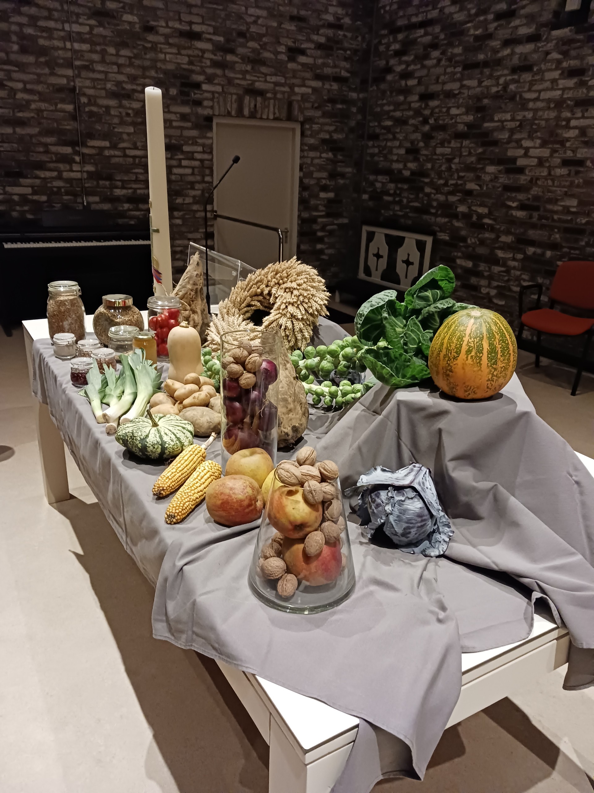 Op zondag 2 november was de eredienst de "dankdienst voor gewas en arbeid". Voorganger was dhr. Jan Kranendonk uit 's Gravendeel. Het thema van de dienst was "Dankbaar genieten en delen". De liederen over dankbaarheid die werden gezongen... "Dank u voor deze nieuwe morgen", "Tel uw zegeningen één voor één", "Dank, dank nu alle God". Als illustratie van dankbaarheid voor "gewas en arbeid" was er een oogsttafel gemaakt. ![]() ![]() ![]() ![]()